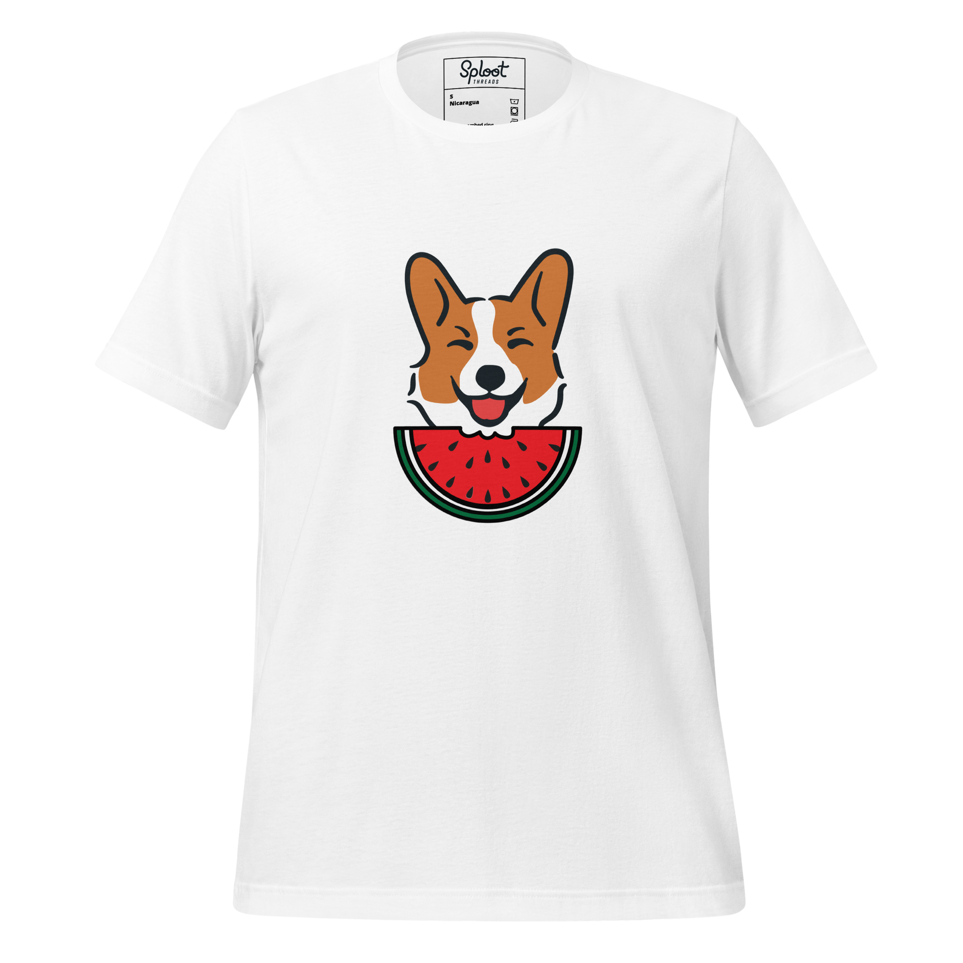 Keeping the summer vibe all year long with this tee. Featuring a happy corgi taking a juicy bite out of a watermelon slice. Soft, comfy, and made for movement, it’s a feel-good favorite for sunny days, park playdates, or backyard BBQs.This t-shirt is everything you've dreamed of and more. It feels soft and lightweight, with the right amount of stretch. It's comfortable and flattering for all.